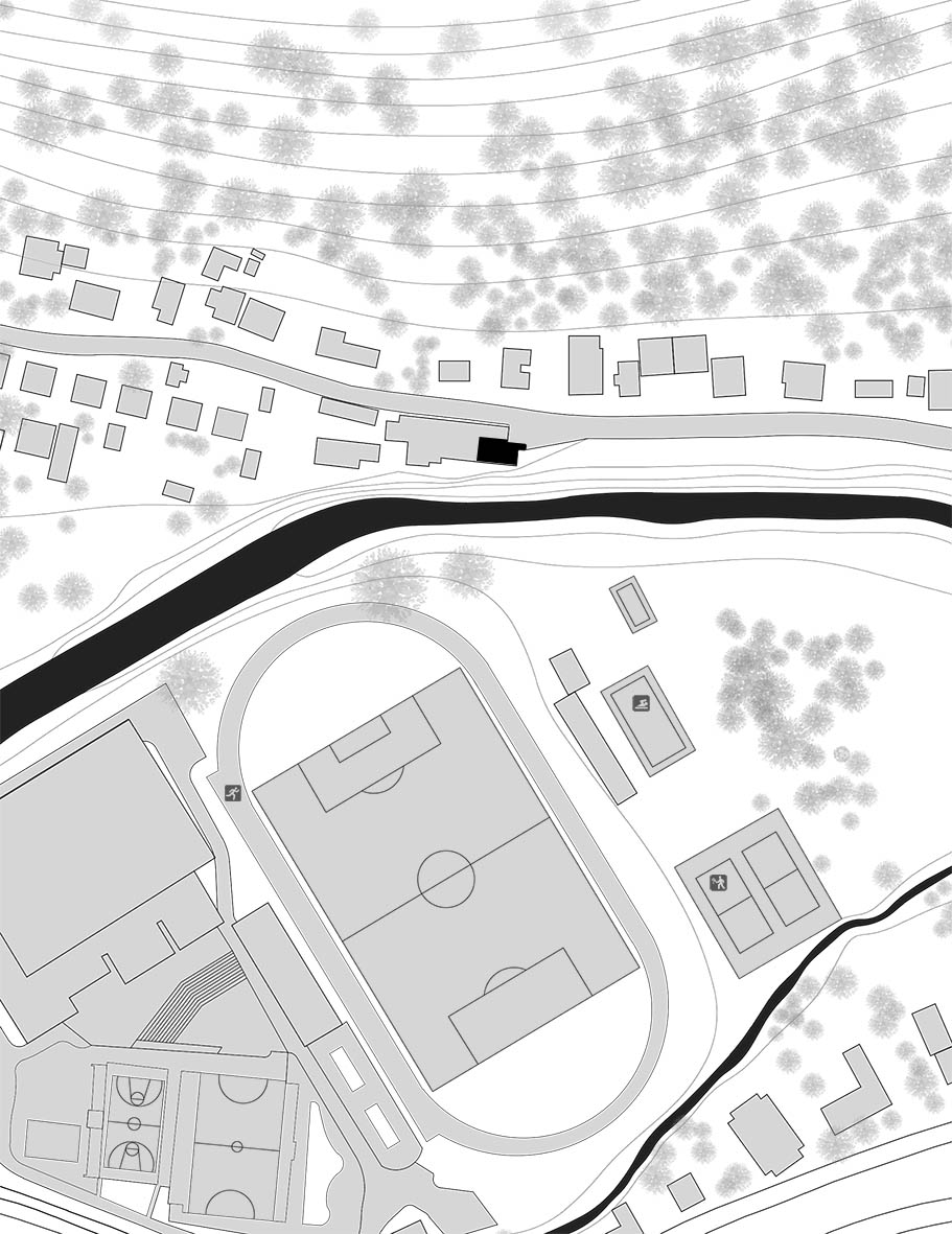 "Sa južne strane parcele nalazi se sportski centar “Park”, dok je sa severne strane padina prekrivena četinarima. Ovakva pozicija objekta uslovila je njegovu orijentaciju i oblikovanje: čitava južna fasada je staklena površina, čime je omogućen pogled na sportske terene i parkovsku površinu, a ujedno i maksimalna osunčanost unutrašnjosti kuće", objašnjavaju arhitekte iz studija "Modelart".
