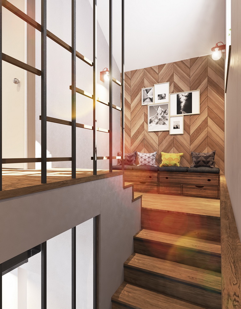 Drugi enterijer prostire se na dva nivoa nekadašnjeg industrijskog prostora koji je pretvoren u mali ali topao porodični dom.