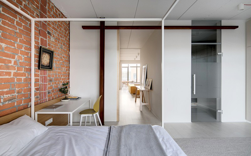 Po želji vlasnika, prozori su postavljeni od poda do plafona sa obe strane stana, što ga čini osvetljenijim i prostranijim. Sunčevi zraci dopiru čak i do kupatila kroz staklena vrata.