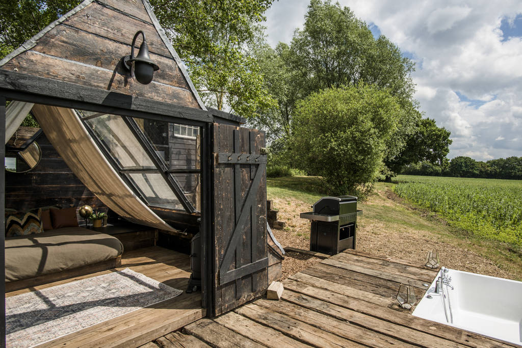 Spoljašnja kada uronjena je u površinu drvene platforme pa nudi pogled na zelena polja dok se relaksirate u toploj kupki.