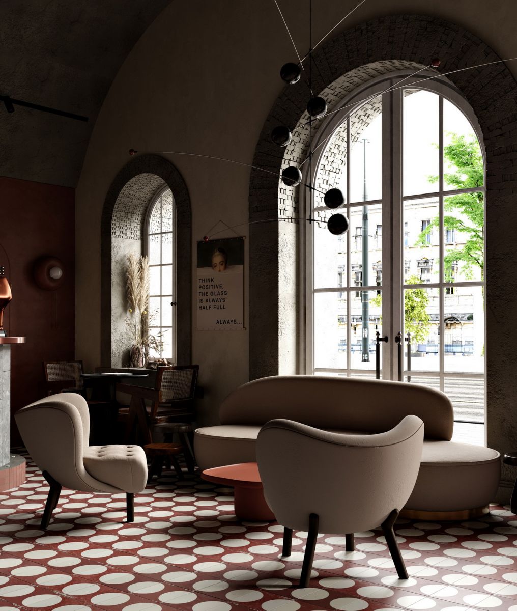 Preko 350 kvadratnih metara u prizemlju zgrade uređeno je u elegantnom retro stilu i obogaćeno modernim delima internacionalnih umetnika.